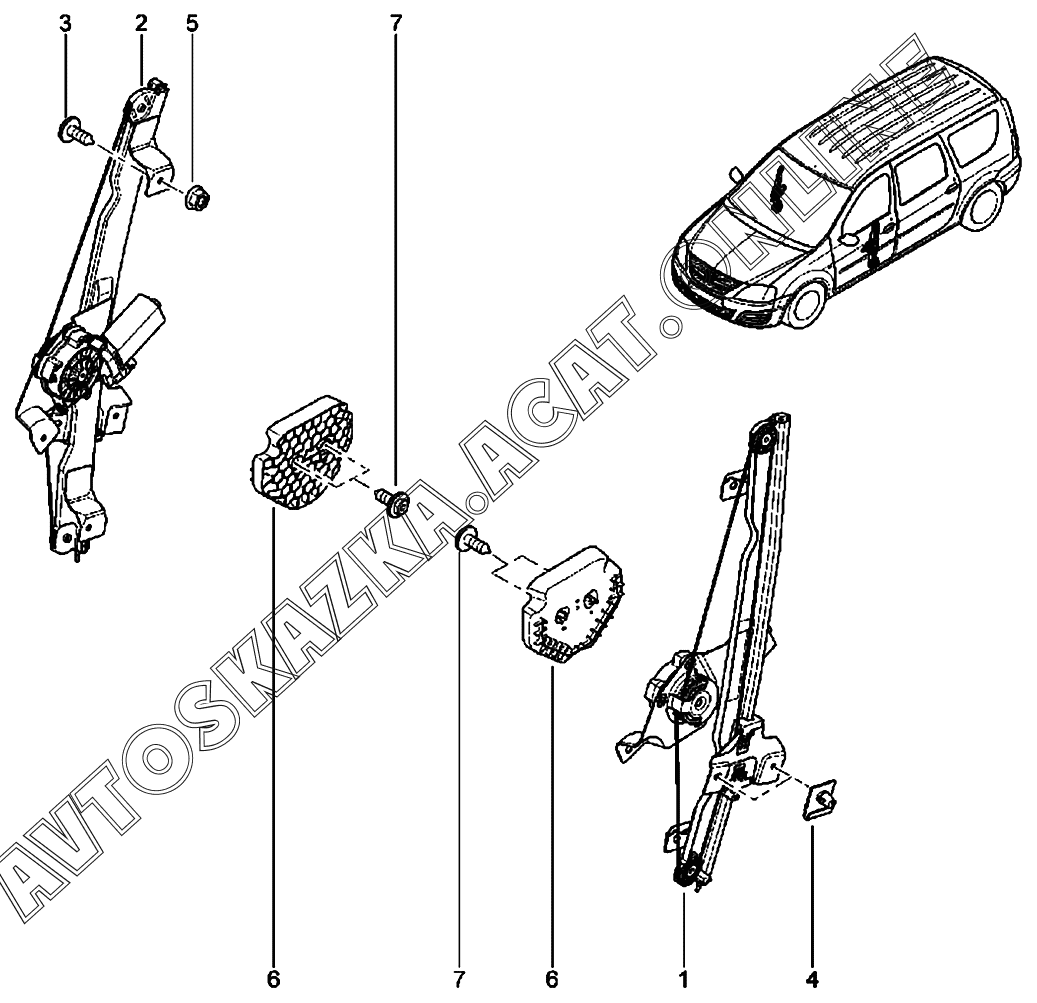 Электростеклоподъемники передних дверей (x90) ВАЗ Largus