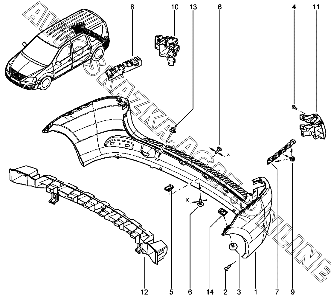 | Название детали: | Гайка фланцевая крепления переднего верхнего правого угла панели заднего бампера |