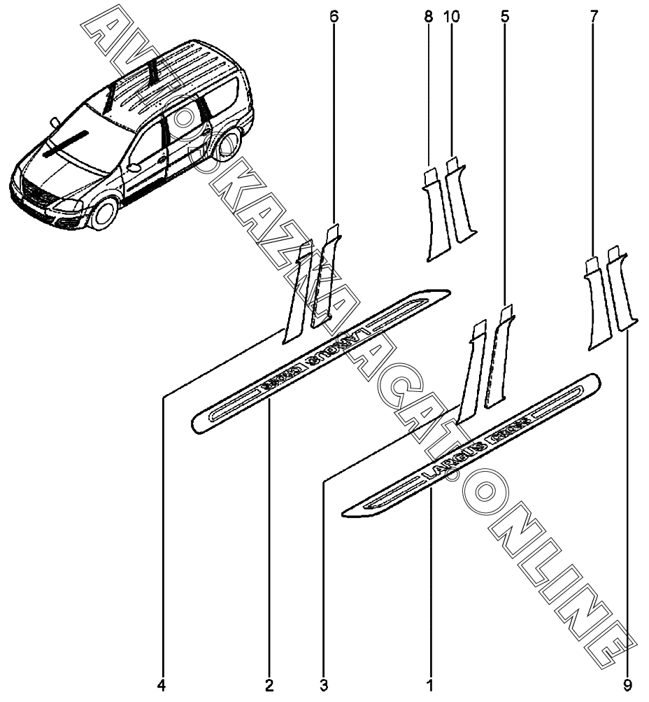 Накладки порога пола, облицовки рамок дверей ВАЗ Largus