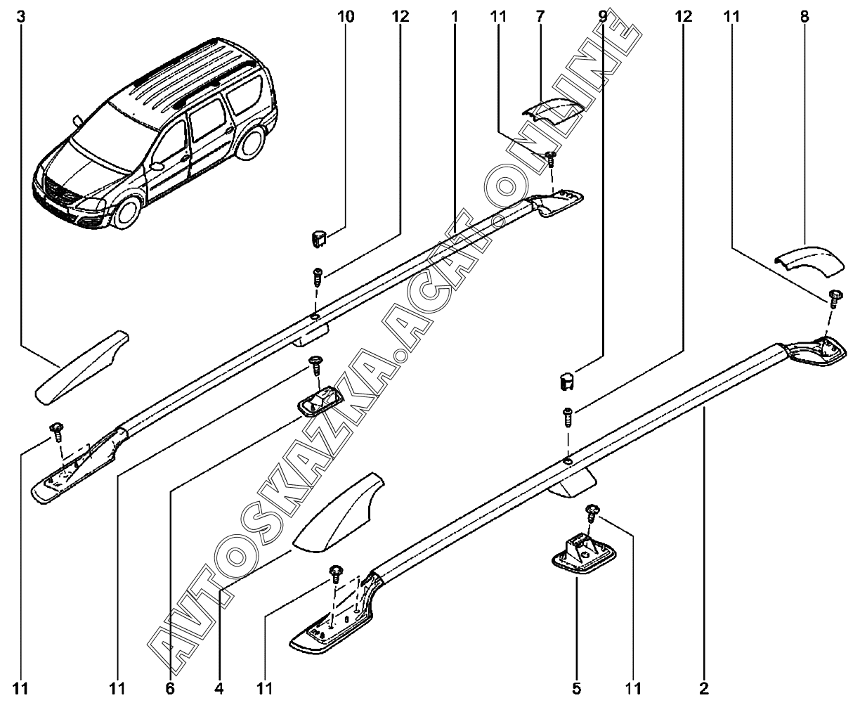 | Название детали: | Ложемент багажника крыши левый с передним, задним кронштейнами и облицовкой среднего кронштейна в сборе |