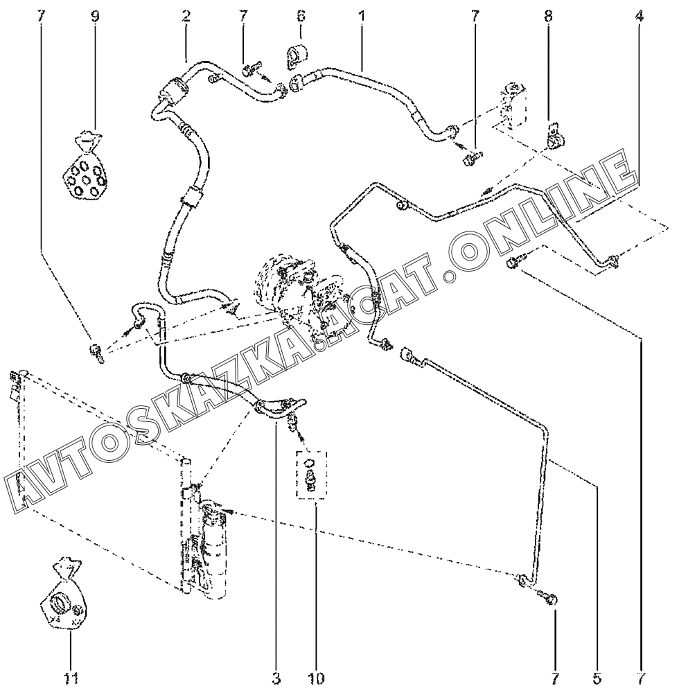 | Название детали: | Трубка 2 между компрессором и осушителем |