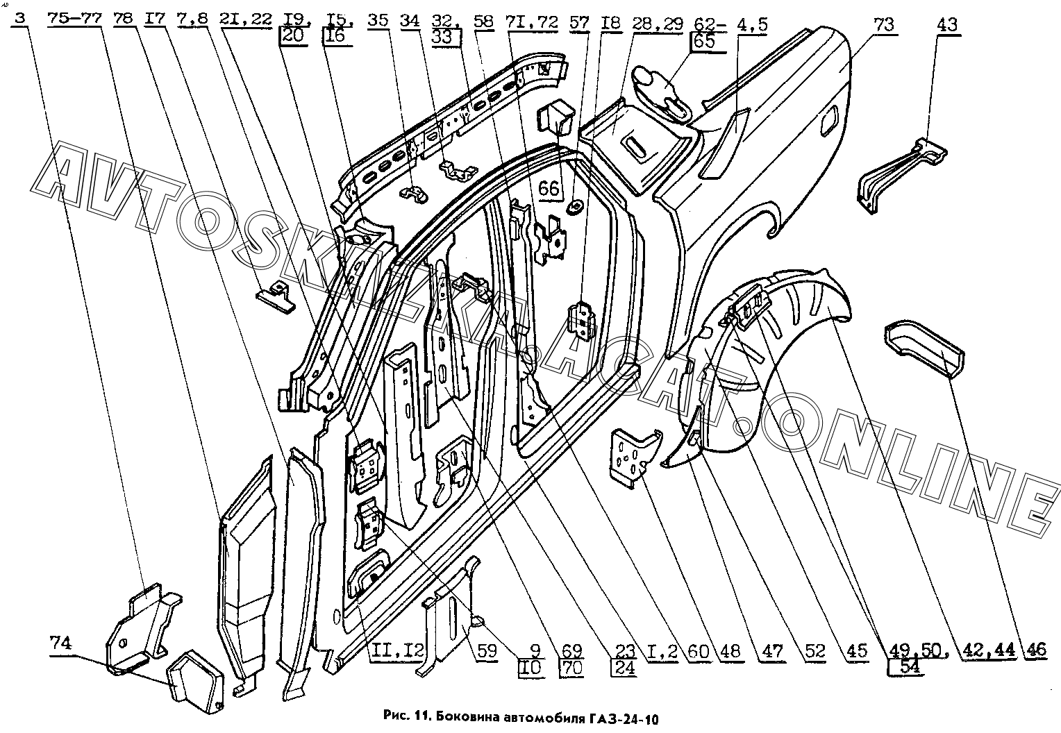 Боковина автомобилей ГАЗ-24-10 ГАЗ Кузов (24-10, 24-12, 3102, 31022, 31029 - кузовные детали)