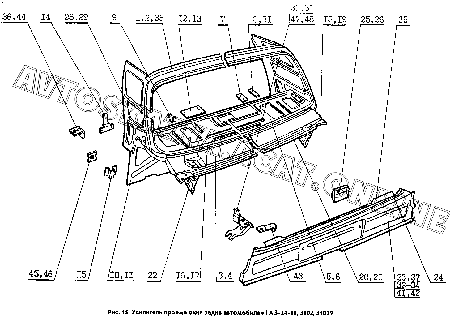 Усилитель проема окна задка и панель задка автомобилей ГАЗ-24-10, 3102, 31029 ГАЗ Кузов (24-10, 24-12, 3102, 31022, 31029 - кузовные детали)