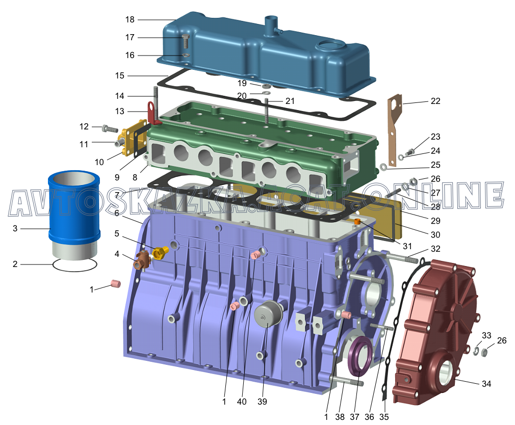 | Название детали: | Блок цилиндров с картером сцепления, крышками коренных подшипников |