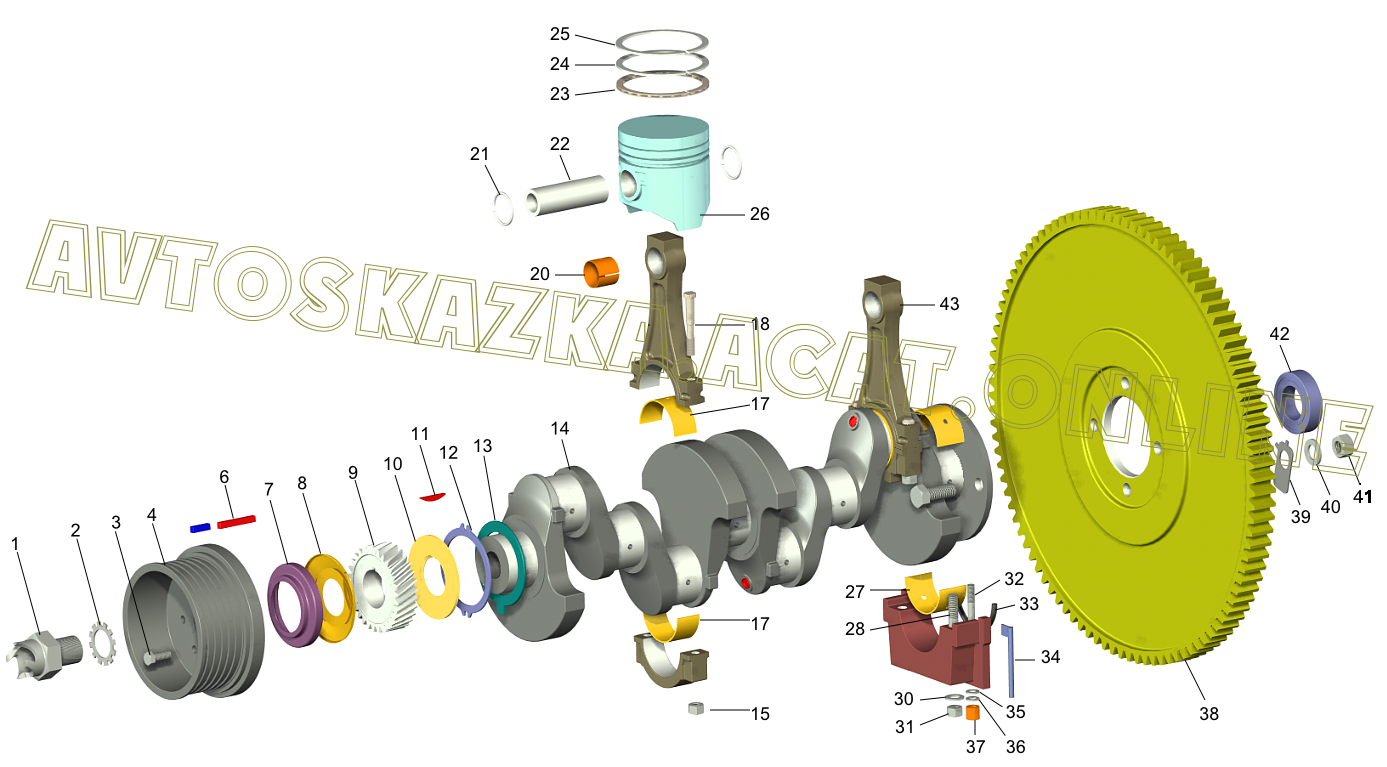 | Название детали: | Вал коленчатый с маховиком и сцеплением |