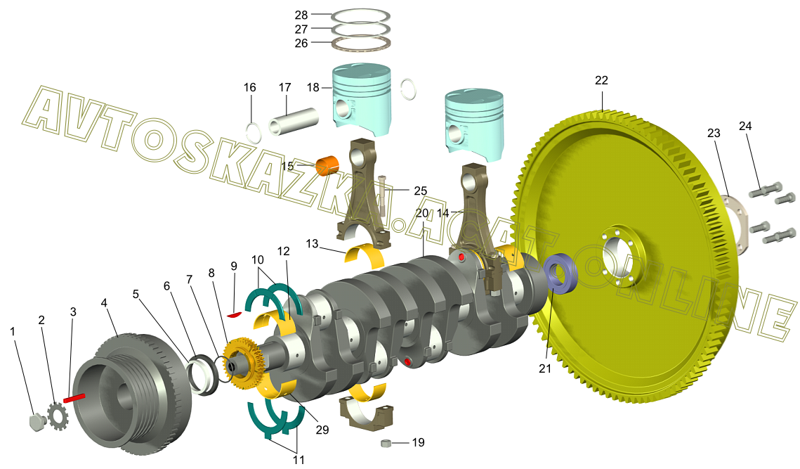 Вал коленчатый, маховик, шатуны и поршни ГАЗ 31105 (ГАЗ-31105 с двигателями ЗМЗ-402, 4062)