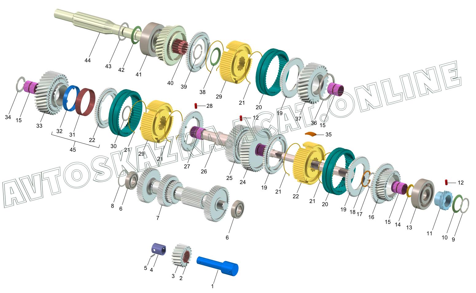 Валы и шестерни коробки передач ГАЗ 31105 (ГАЗ-31105 с двигателями ЗМЗ-402, 4062)