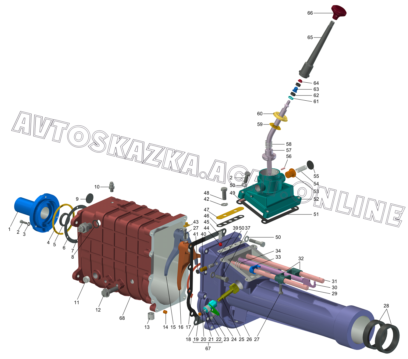 Передний и задний картер коробки передач, механизм переключения передач ГАЗ 31105 (ГАЗ-31105 с двигателями ЗМЗ-402, 4062)
