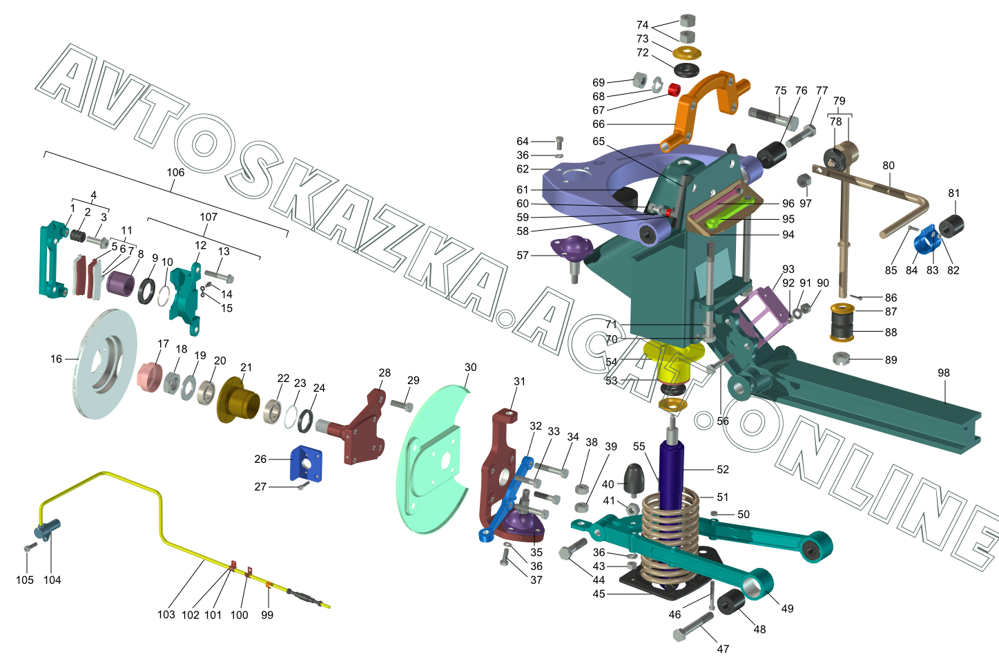 Подвеска передняя и тормоза передние ГАЗ 31105 (ГАЗ-31105 с двигателями ЗМЗ-402, 4062)