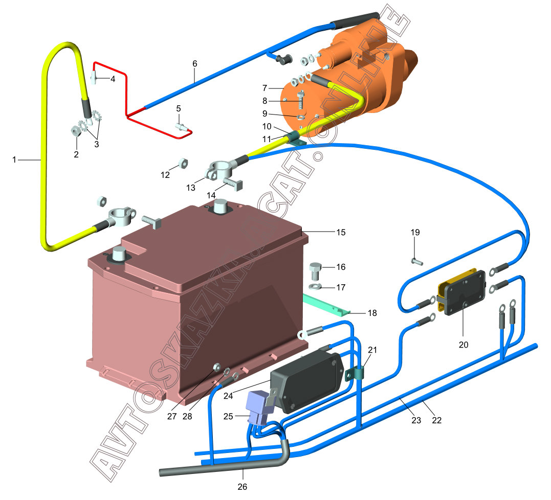 | Название детали: | Провод от аккумуляторной батареи к стартеру |