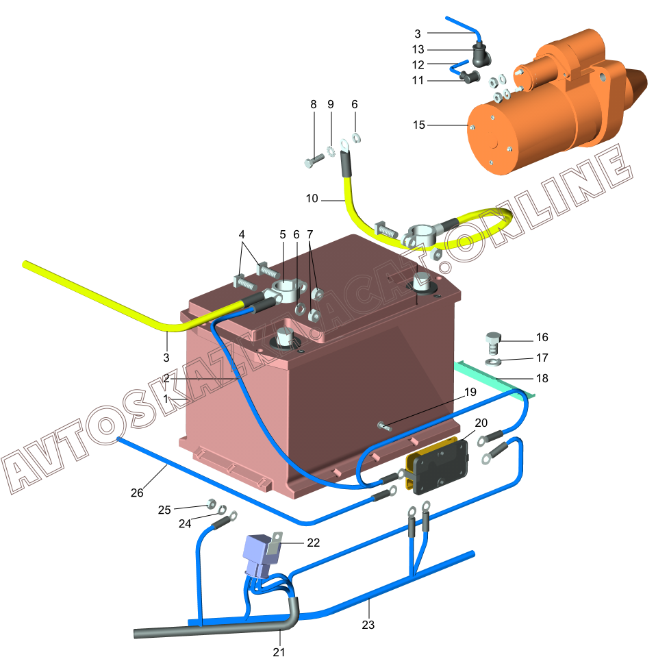 | Название детали: | Провод от аккумуляторной батареи к блоку предохранителей |