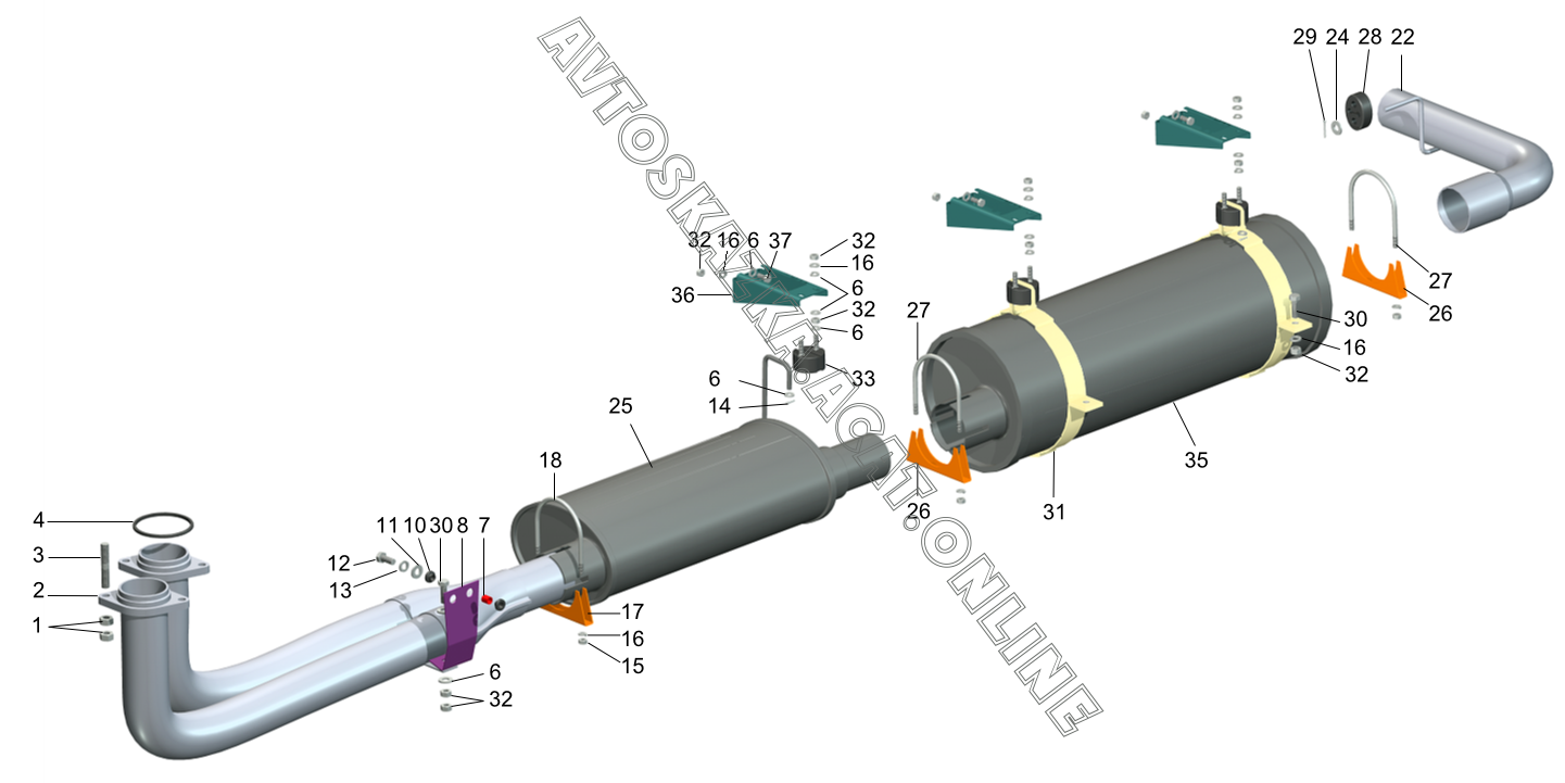 Глушитель, резонатор, трубы глушителя ЗМЗ-402 ГАЗ 2705 (с двигателями ЗМЗ-402, 406)