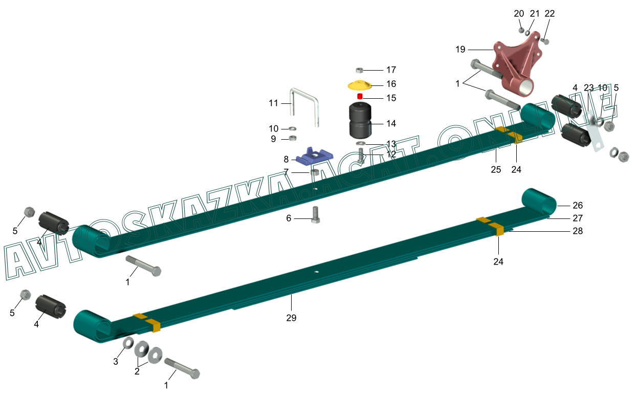 | Название детали: | Рессора передняя с шарнирами (многолистовая) |