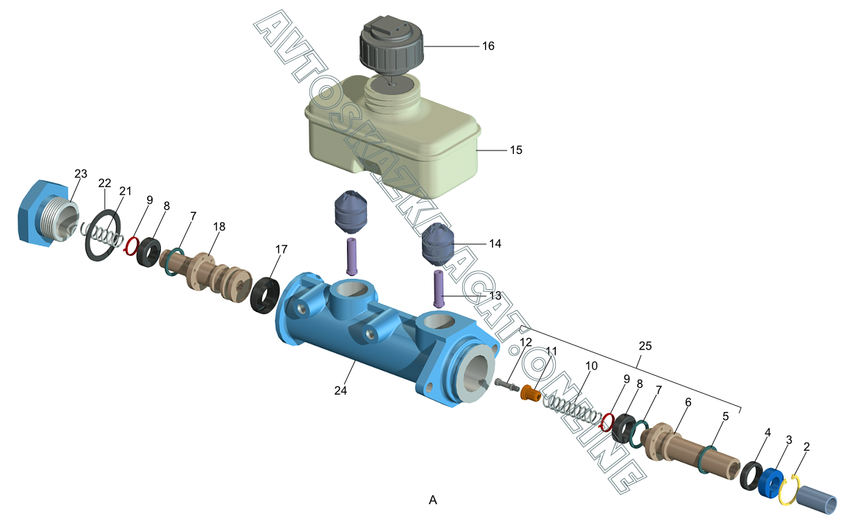 Детали главного цилиндра тормозов, датчик аварийного уровня тормозной жидкости