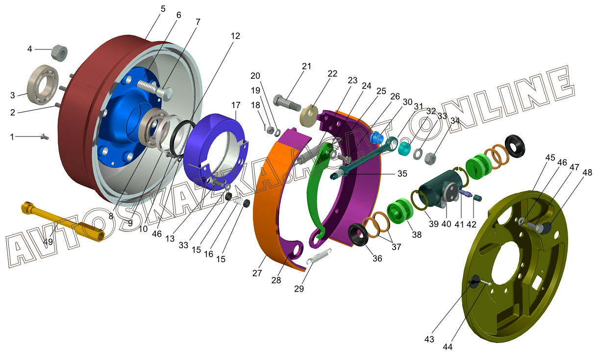 | Название детали: | Ступица и тормозной барабан с подшипниками |