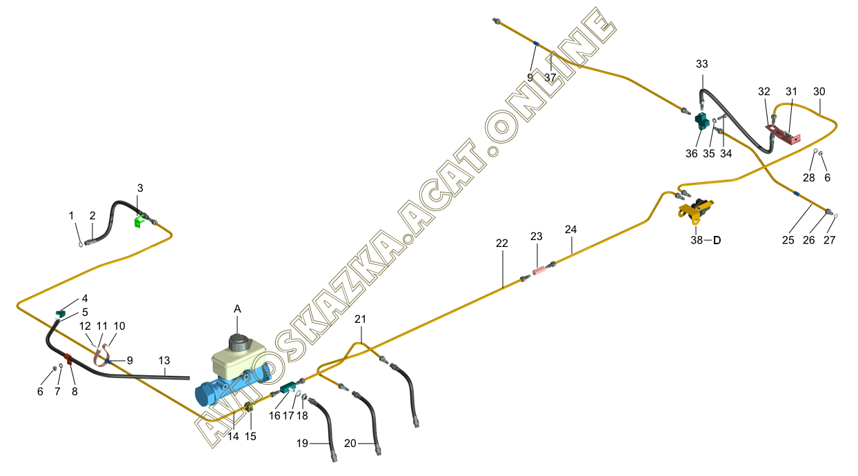 | Название детали: | Трубопроводы заднего моста с тройником и шлангом |