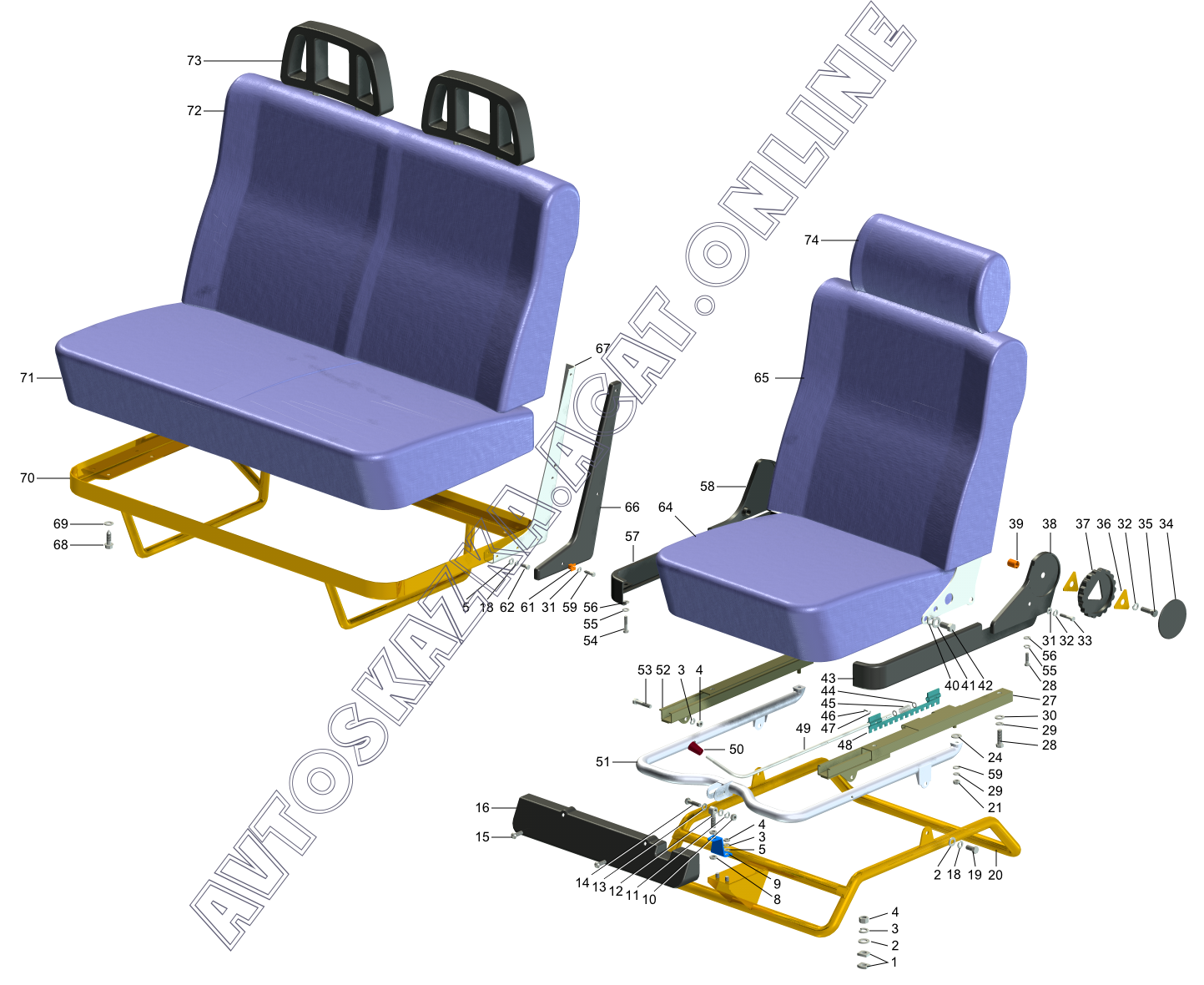 Сиденья кабины ГАЗ 2705 (с двигателями ЗМЗ-402, 406)