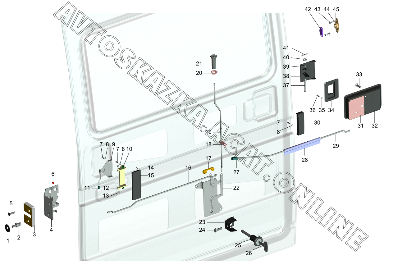 Замки и ручки боковой двери ГАЗ 2705 (с двигателями ЗМЗ-402, 406)