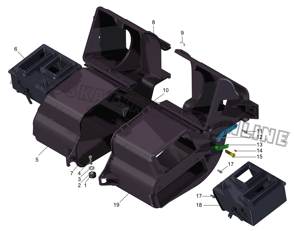 Детали корпуса отопителя (с 2003г.) ГАЗ 2705 (с двигателями ЗМЗ-402, 406)