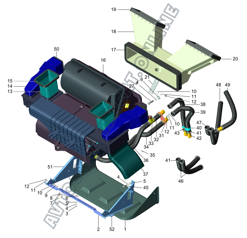 Установка отопителя (с 2003г.) ГАЗ 2705 (с двигателями ЗМЗ-402, 406)
