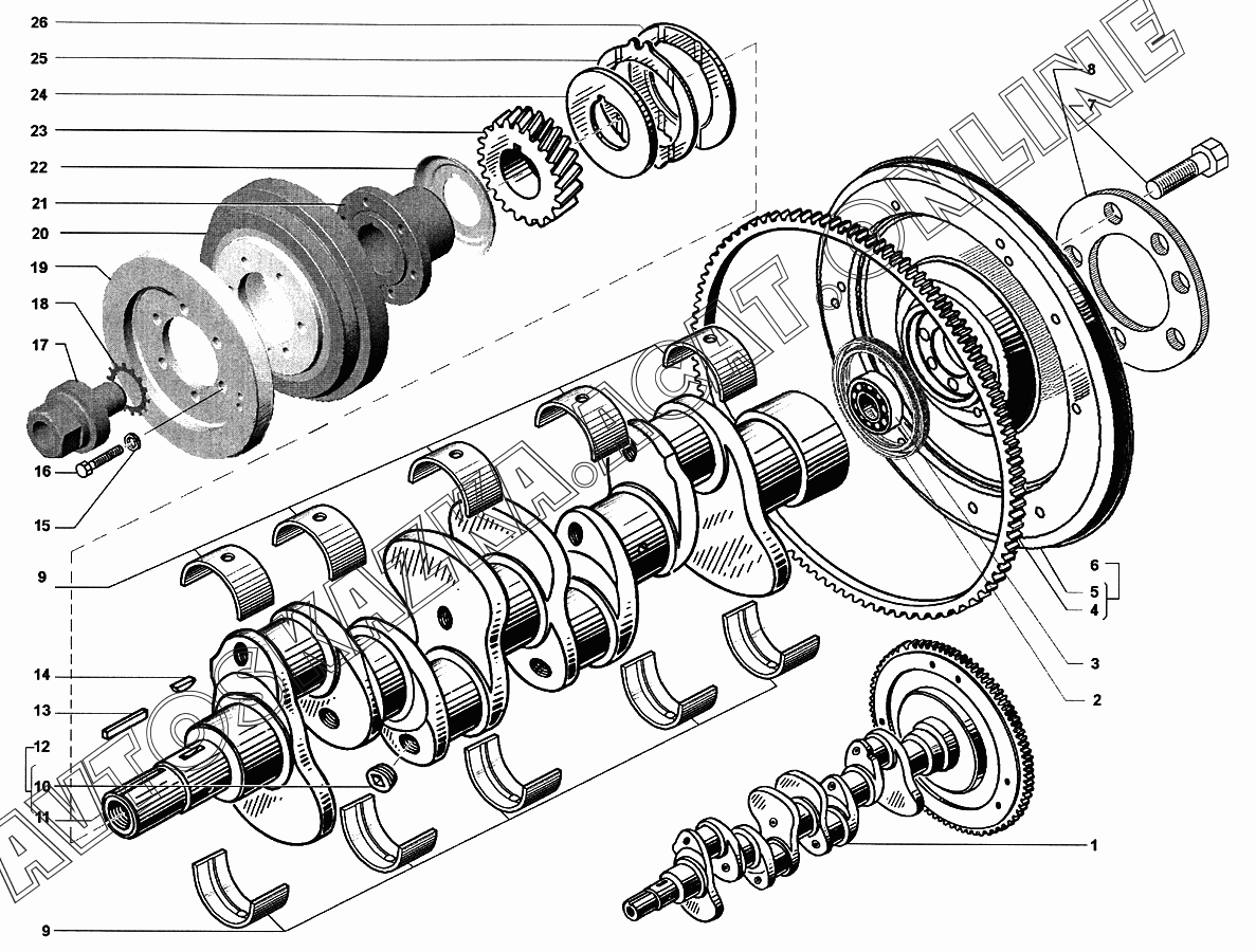 Вал коленчатый и маховик ГАЗ 4215 (4215, 4215-10, 4215-11, 4215-30, 4215-31, 4215-35)