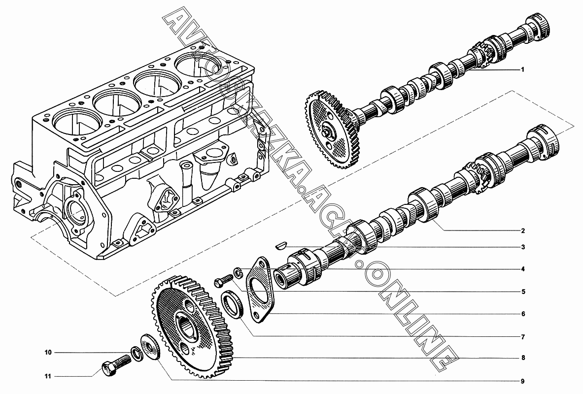 | Название детали: | Вал распределительный с шестерней в сборе |