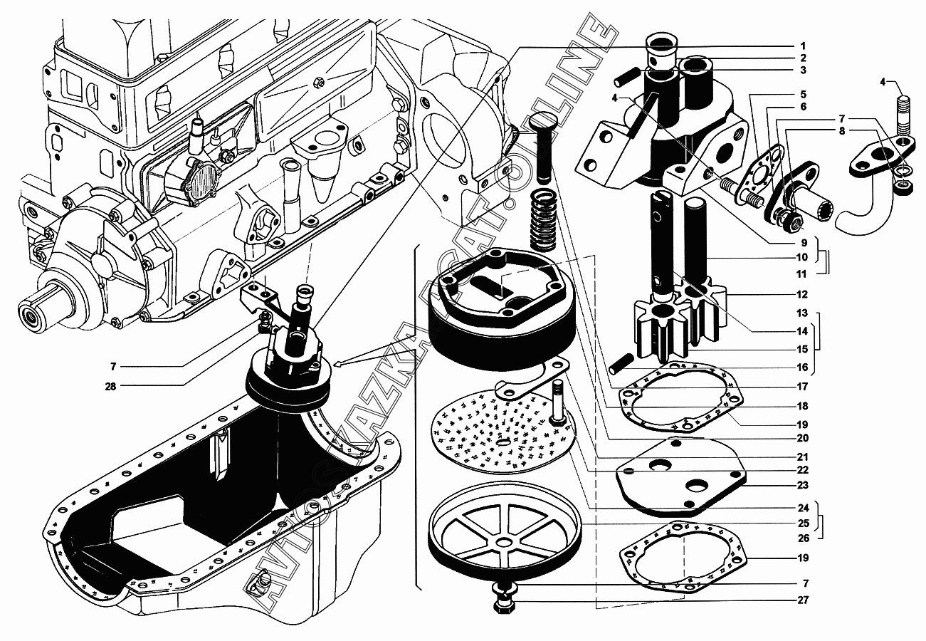 Маслоприемник и масляный насос ГАЗ 4215 (4215, 4215-10, 4215-11, 4215-30, 4215-31, 4215-35)