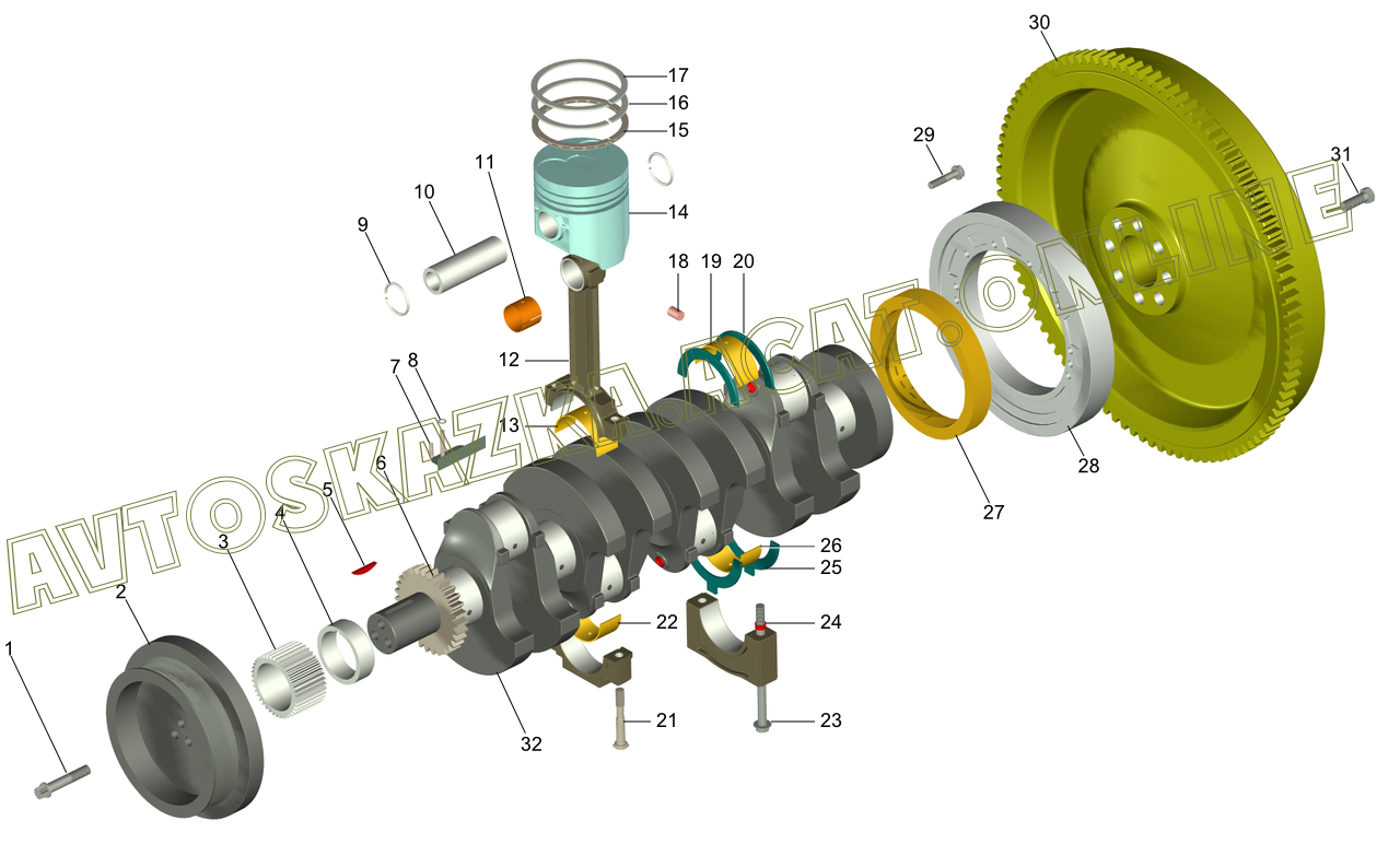 Вал коленчатый, маховик, шатуны и поршни ГАЗ 560 (560 (Euro-0), 5601 (Euro-2), 5602 (Euro-3))