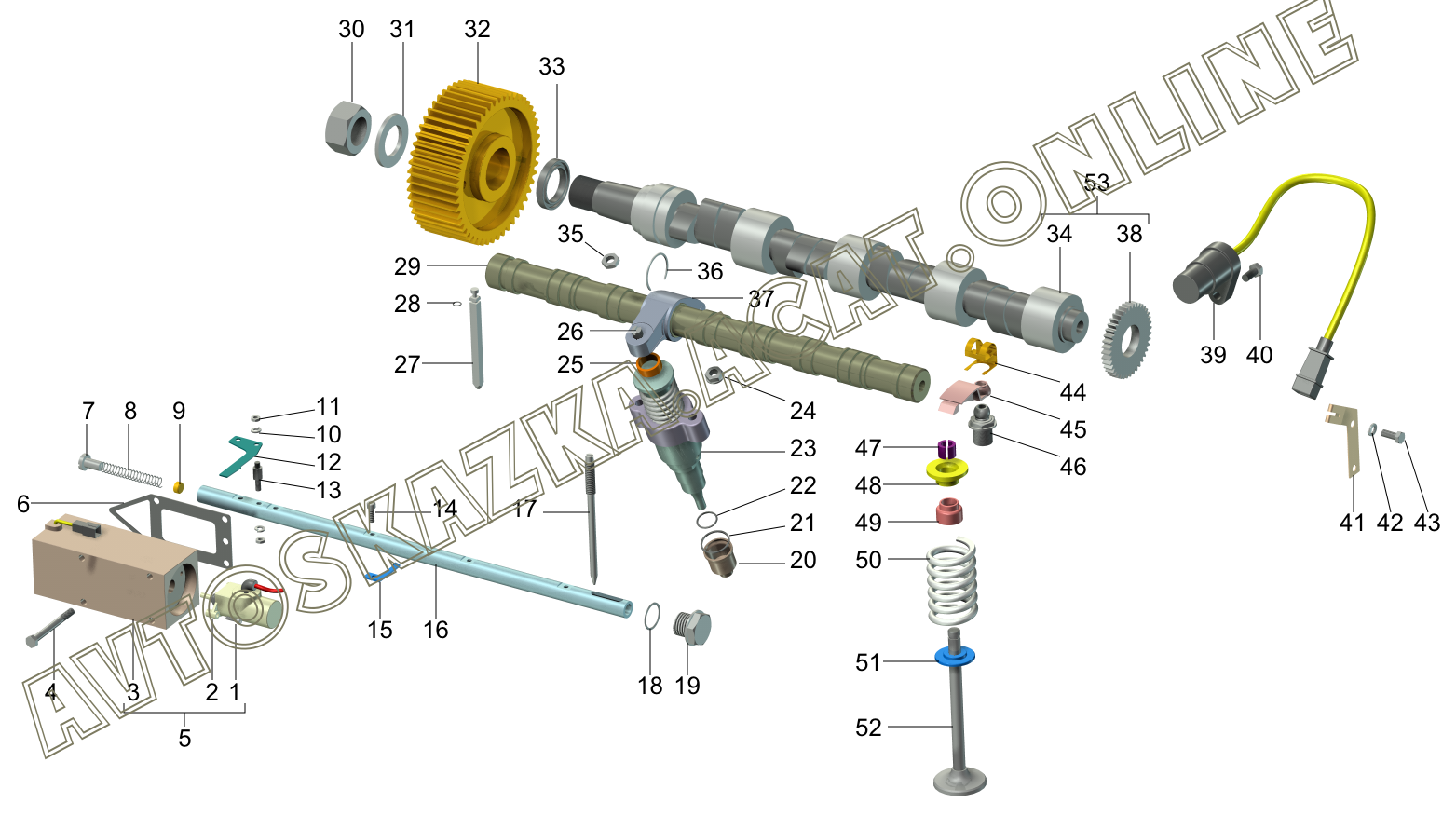 | Название детали: | Вал распределительный с диском датчика |