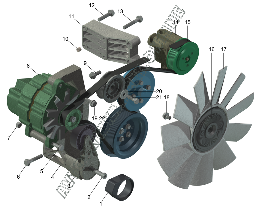 Генератор с вакуумным насосом, насос рулевого гидроусилителя, привод навесных агрегатов