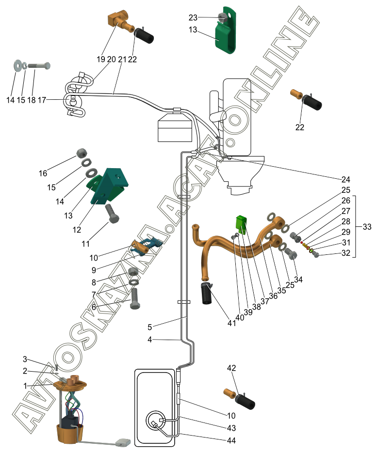 Топливный погружной модуль, топливные трубопроводы ГАЗ 560 (560 (Euro-0), 5601 (Euro-2), 5602 (Euro-3))