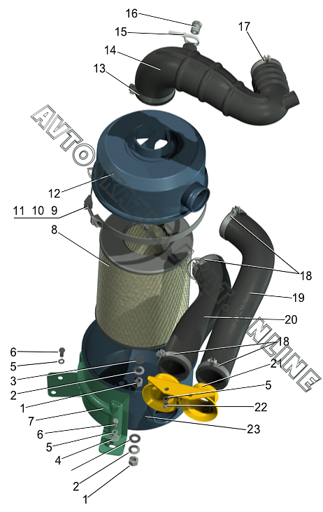 Фильтр воздушный со шлангами, воздухозаборник ГАЗ 560 (560 (Euro-0), 5601 (Euro-2), 5602 (Euro-3))
