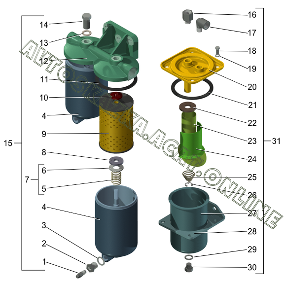 Фильтр тонкой очистки топлива, фильтр грубой очистки топлива ГАЗ 560 (560 (Euro-0), 5601 (Euro-2), 5602 (Euro-3))