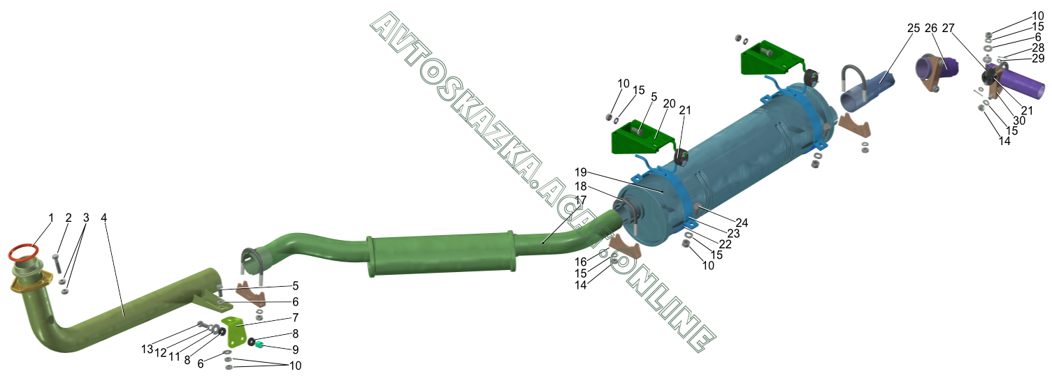 Глушитель, резонатор, труба выхлопная автомобиля Соболь с двигателем ГАЗ-5602 ГАЗ 560 (560 (Euro-0), 5601 (Euro-2), 5602 (Euro-3))