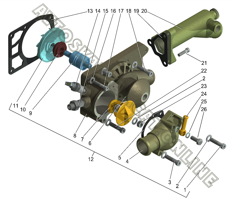 Насос водяной с термостатом, датчики температуры охлаждающей жидкости ГАЗ 560 (560 (Euro-0), 5601 (Euro-2), 5602 (Euro-3))