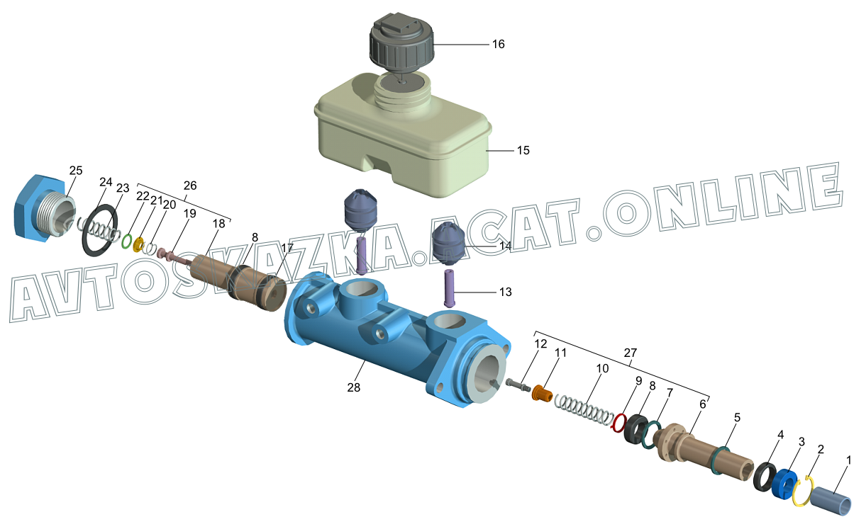 Детали главного цилиндра тормозов, датчик аварийного уровня тормозной жидкости (с АБС)