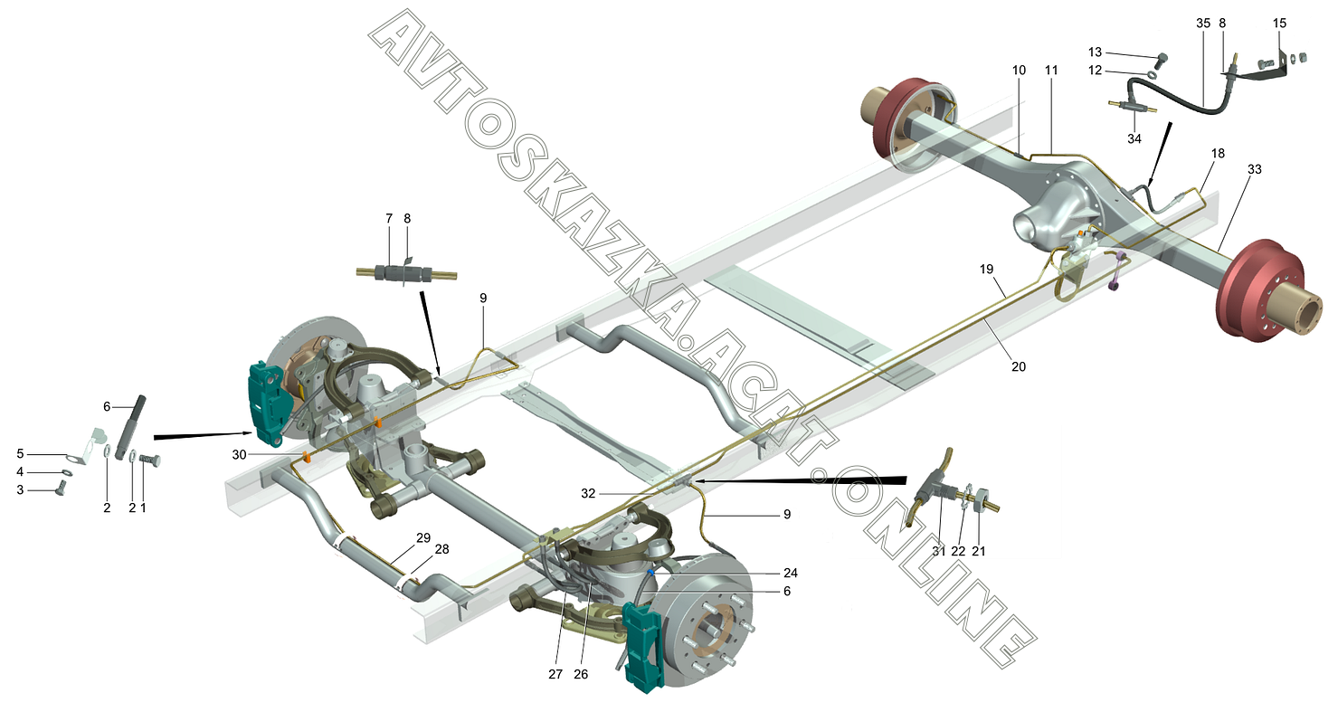 | Название детали: | Трубопроводы передней оси с тройниками |