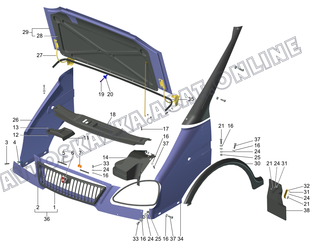 Обшивка радиатора, крылья передние, оперение, крышка капота ГАЗ 2217 (2217-0000430, 22171-0005430)