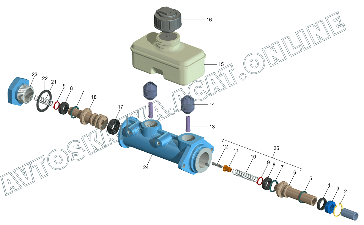 Детали главного цилиндра тормозов, датчик аварийного уровня тормозной жидкости (без АБС)