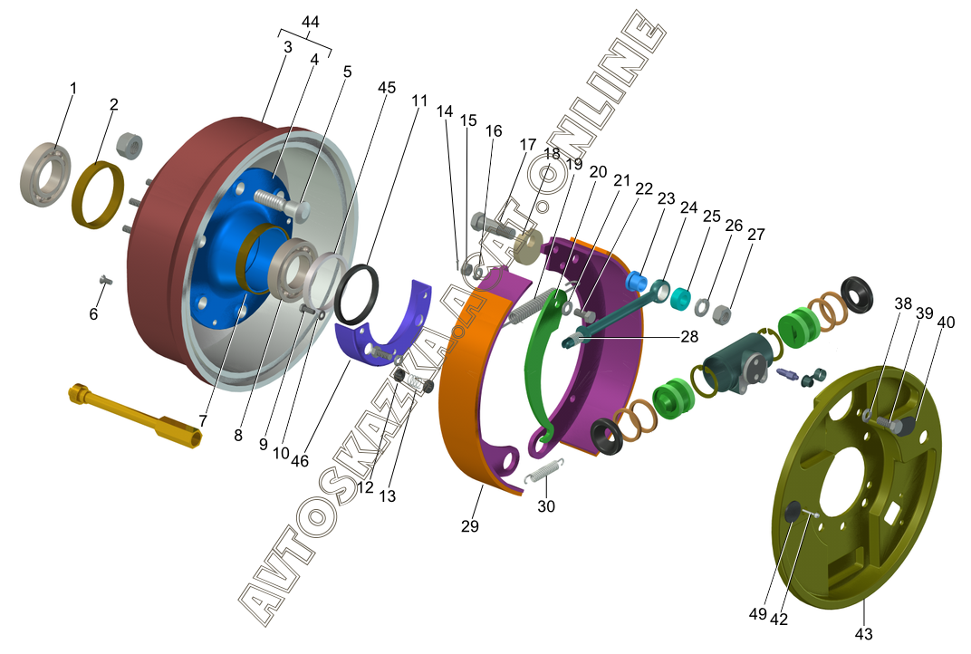| Название детали: | Ступица и барабан заднего колеса с подшипниками |