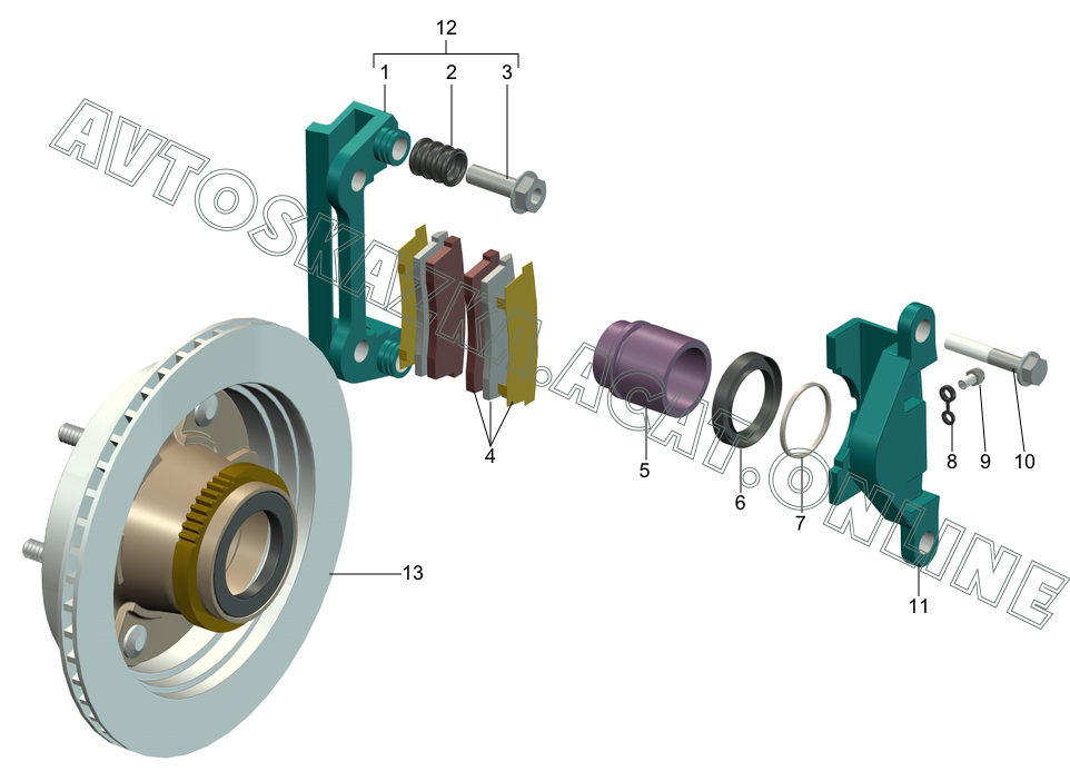 | Название детали: | Ступица переднего колеса с тормозным диском и подшипник |