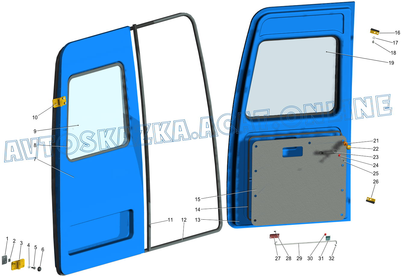 Дверь задка, навеска двери, обивка, поручень, стекла, кант проема ГАЗ 2752 (2752-0000431, 2752-0000441)