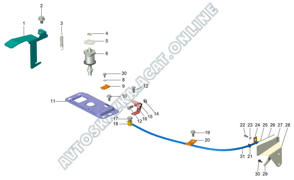 | Название детали: | Скоба крепления оболочки тяги привода к замку |