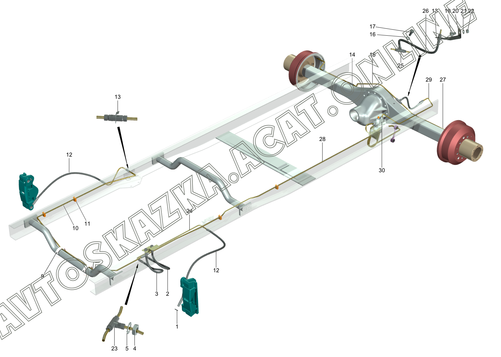| Название детали: | Трубопроводы заднего моста с тройником и шлангом |