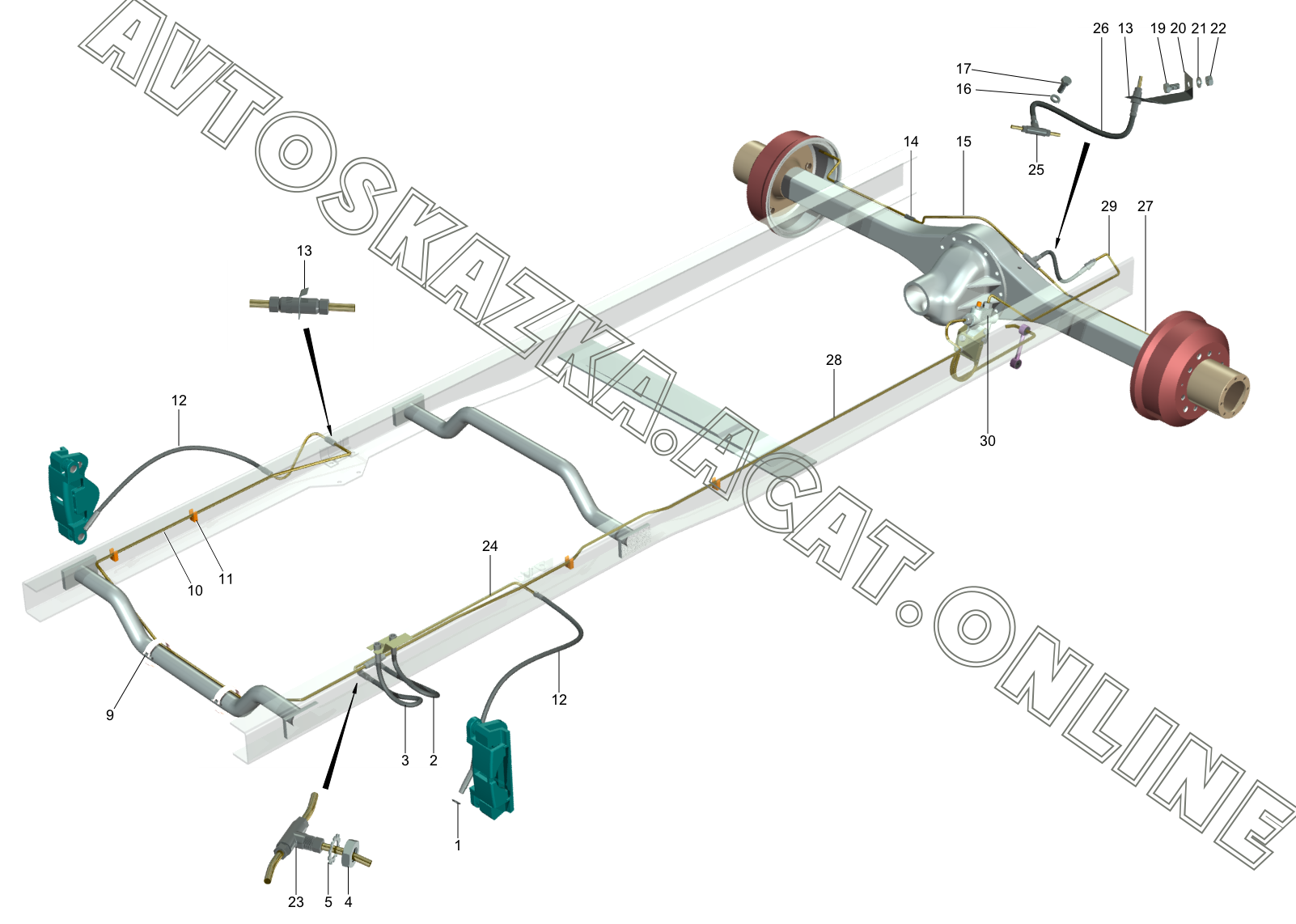 | Название детали: | Трубопроводы заднего моста с тройником и шлангом |