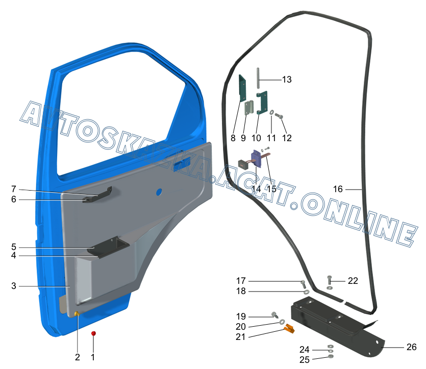 Дверь и обивка двери ГАЗ 3302 (3302-404, 3302-408 (двигатель ЗМЗ), 3302-216 (двигатель УМЗ))