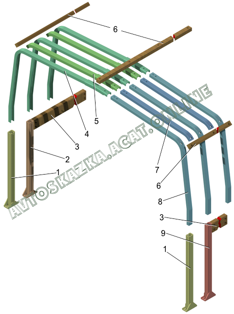 Комплект деталей каркаса тента ГАЗ 3302 (3302-404, 3302-408 (двигатель ЗМЗ), 3302-216 (двигатель УМЗ))