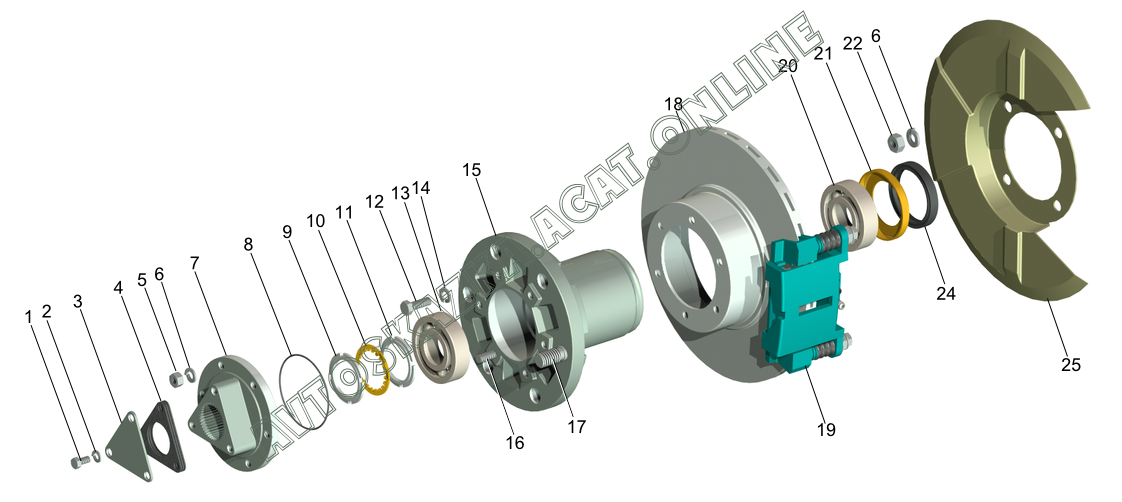 Ступица переднего колеса, дисковый тормоз ГАЗ 4x4 (тип 4x4 с двигателями ЗМЗ-4063, ЗМЗ-40522, ГАЗ-5602 (дополнение))