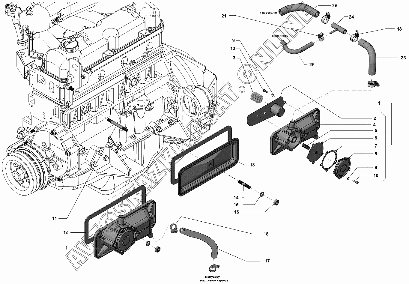 Вентиляция картера ГАЗ 4216 (42164-00, 42164-10 (Euro-4), 4216-40, 4216-41, 4216-11 (Euro-3))