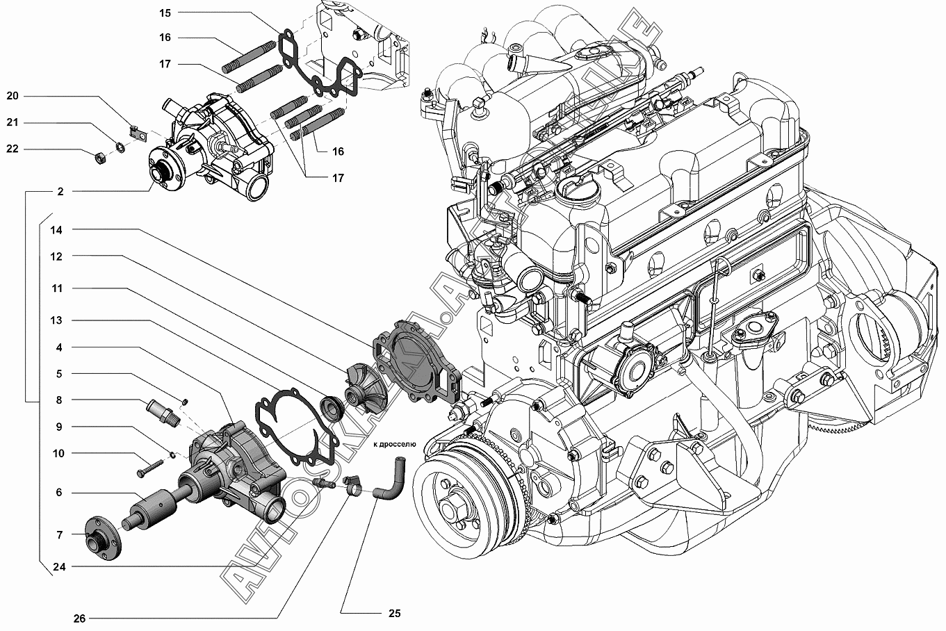 Насос водяной ГАЗ 4216 (42164-00, 42164-10 (Euro-4), 4216-40, 4216-41, 4216-11 (Euro-3))